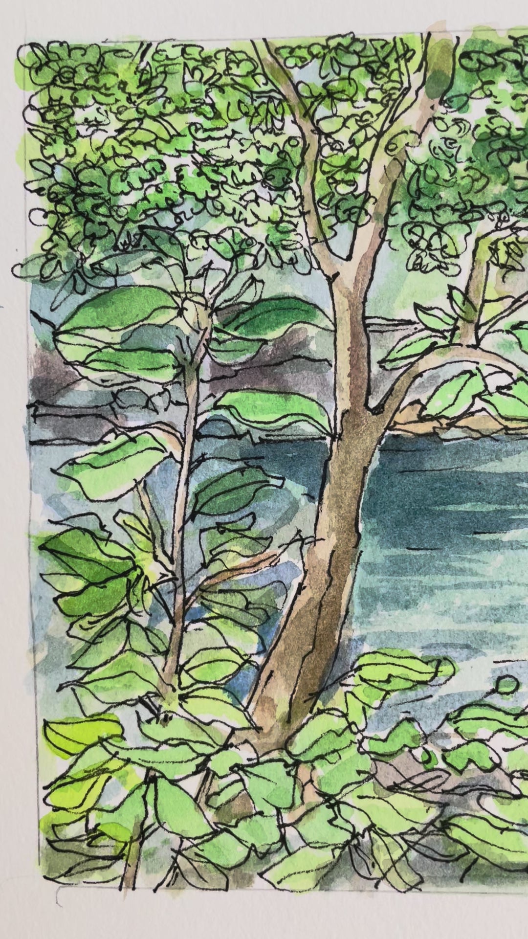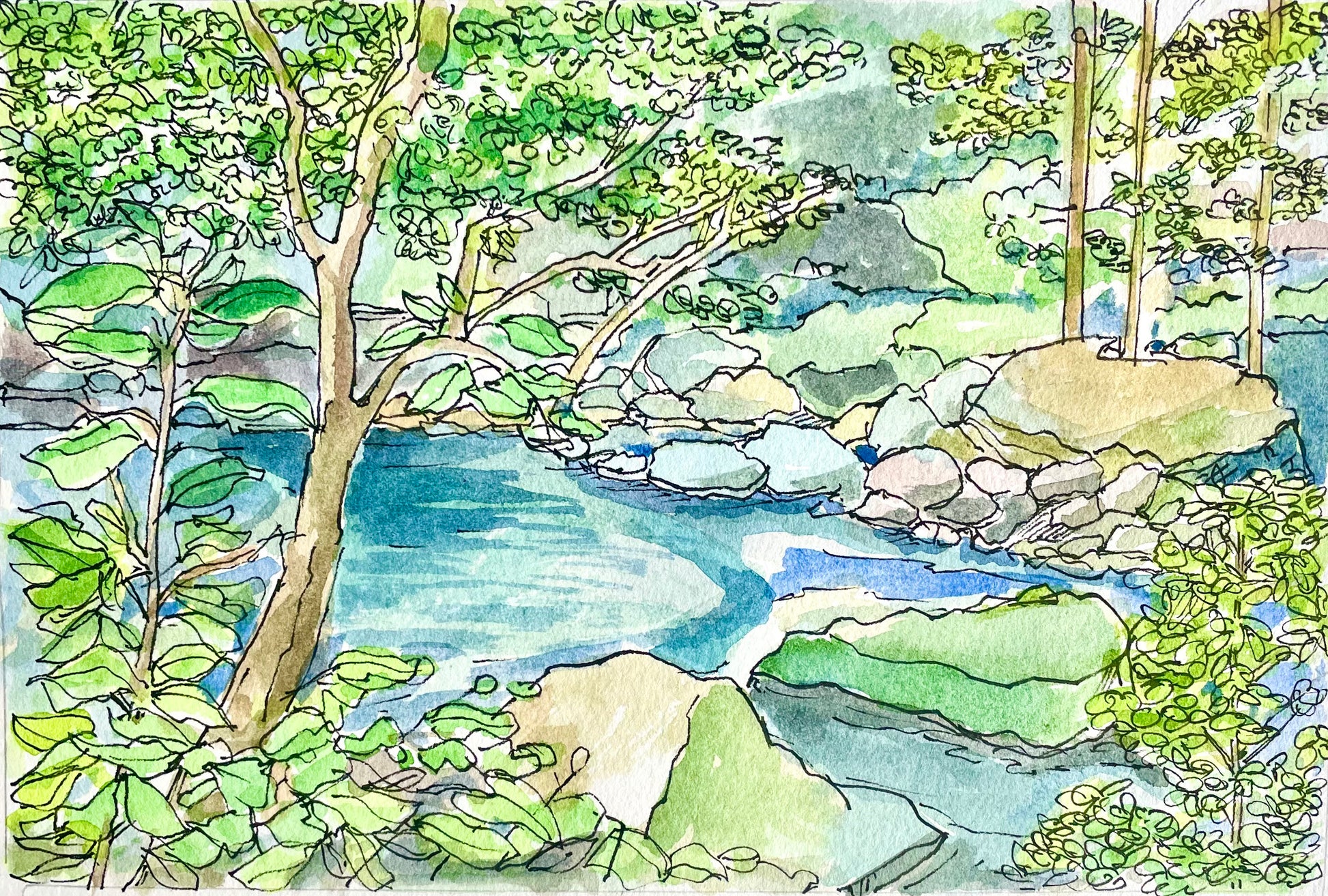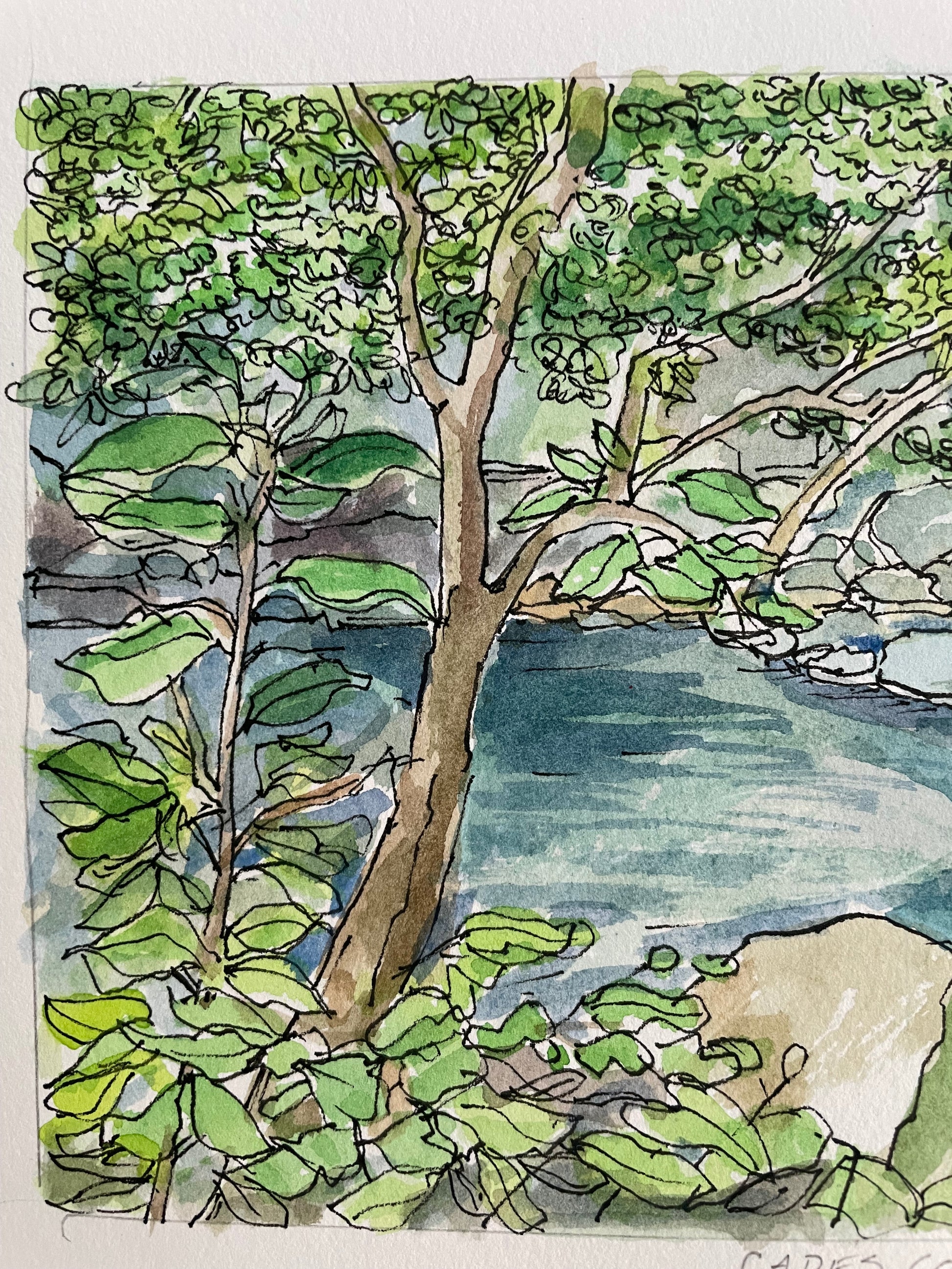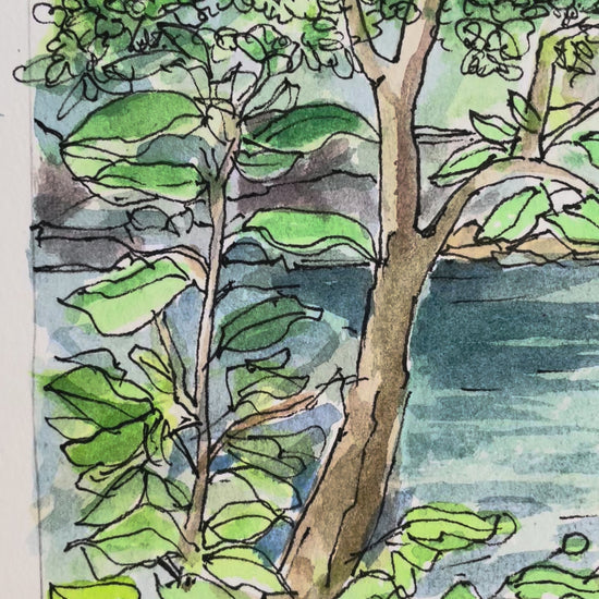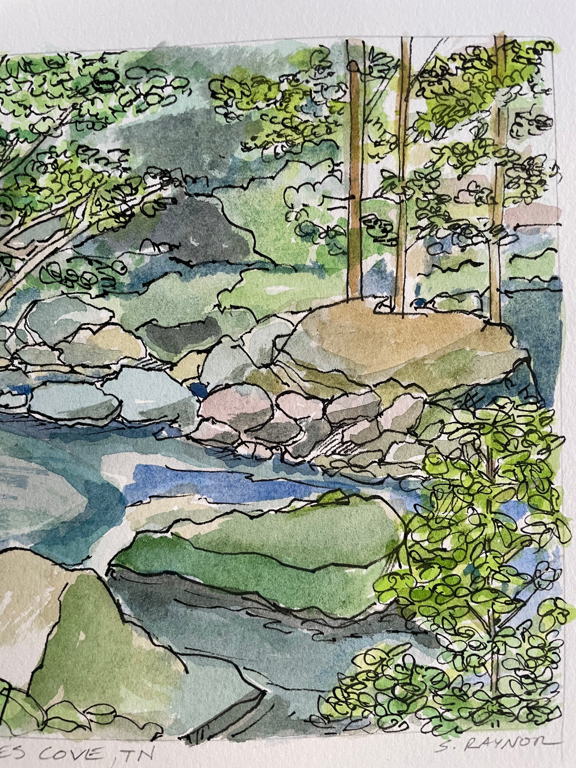 This limited edition fine art print captures the quiet beauty of Cades Cove in the Great Smoky Mountains National Park. I found a quiet riverside spot to paint both this watercolor as well as an oil painting. This was a peaceful spot by the roadside. Many passersby would stop and chat and blow their horns as I painted. I hope they find this piece!