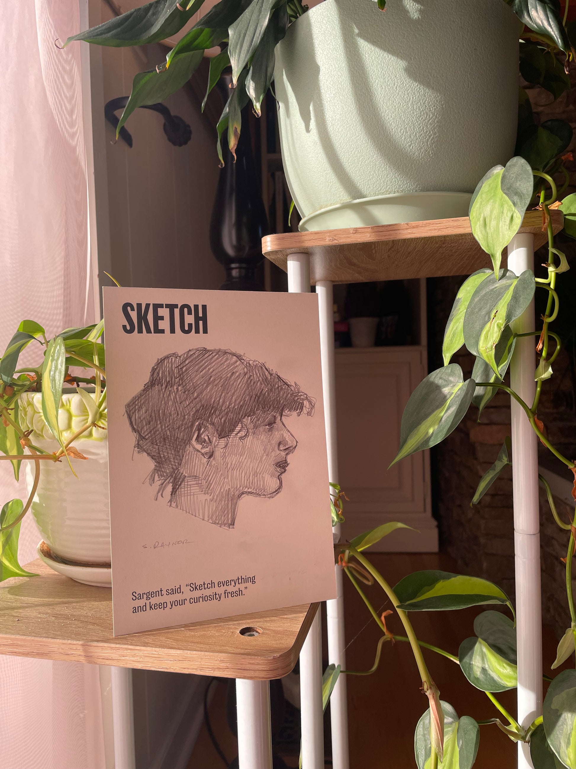 This original graphite drawing is inspired by a portrait by John Singer Sargent, depicting a young local girl from Capri, Italy. Rendered in delicate pencil linework, the drawing captures both the quiet grace of Sargent’s subject and the timeless intimacy of hand-drawn portraiture.