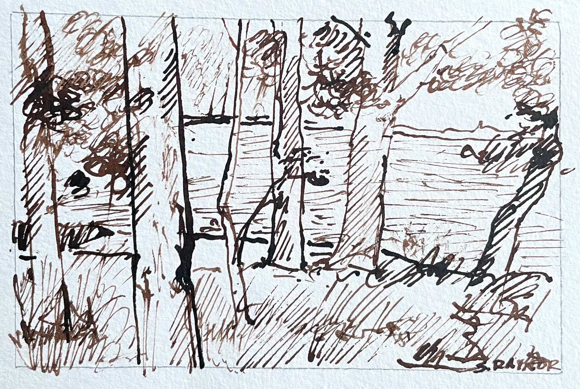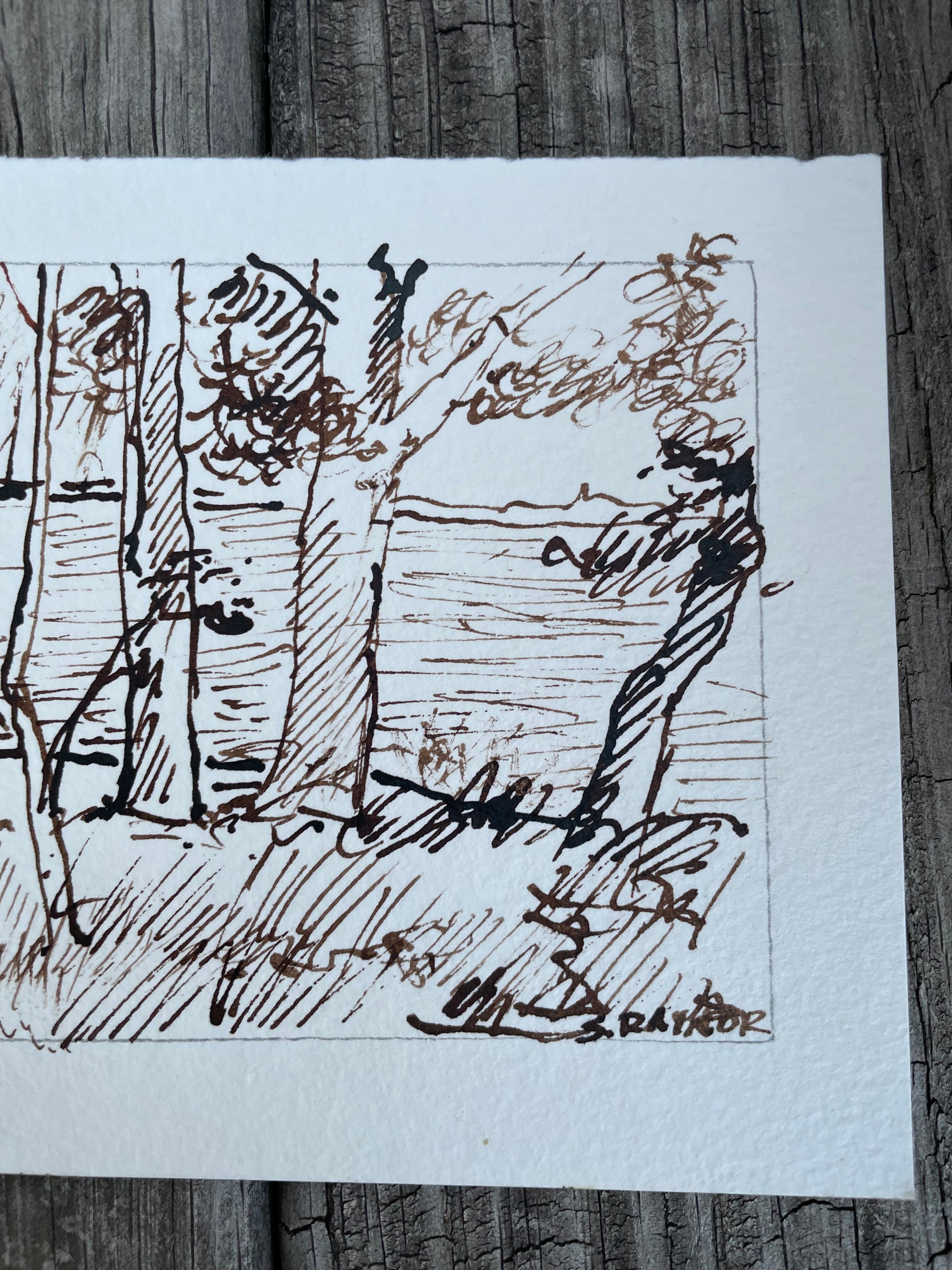 Late Summer Trees by the Water – Original 3.5x5 Walnut Ink Drawing on Watercolor Paper