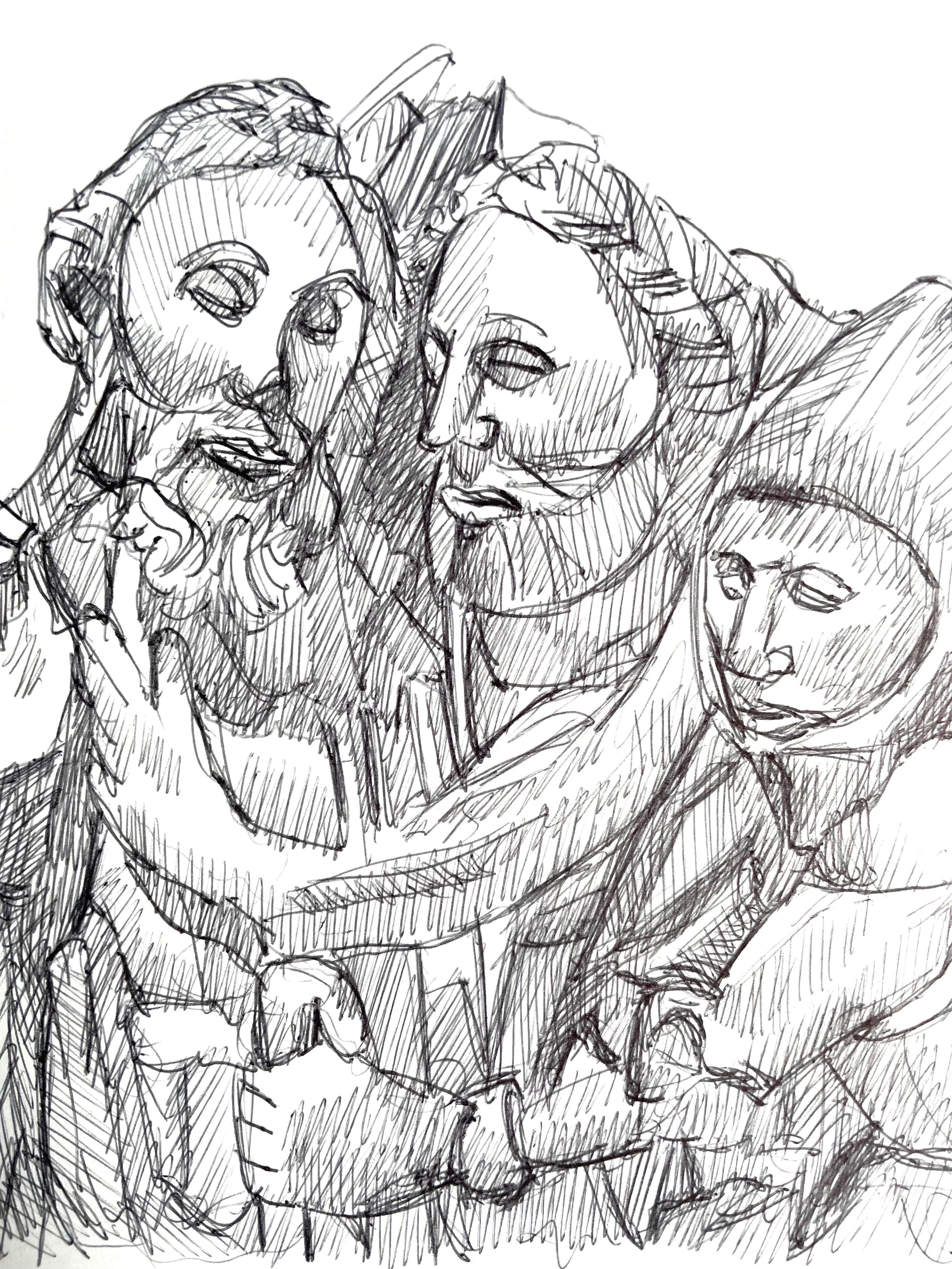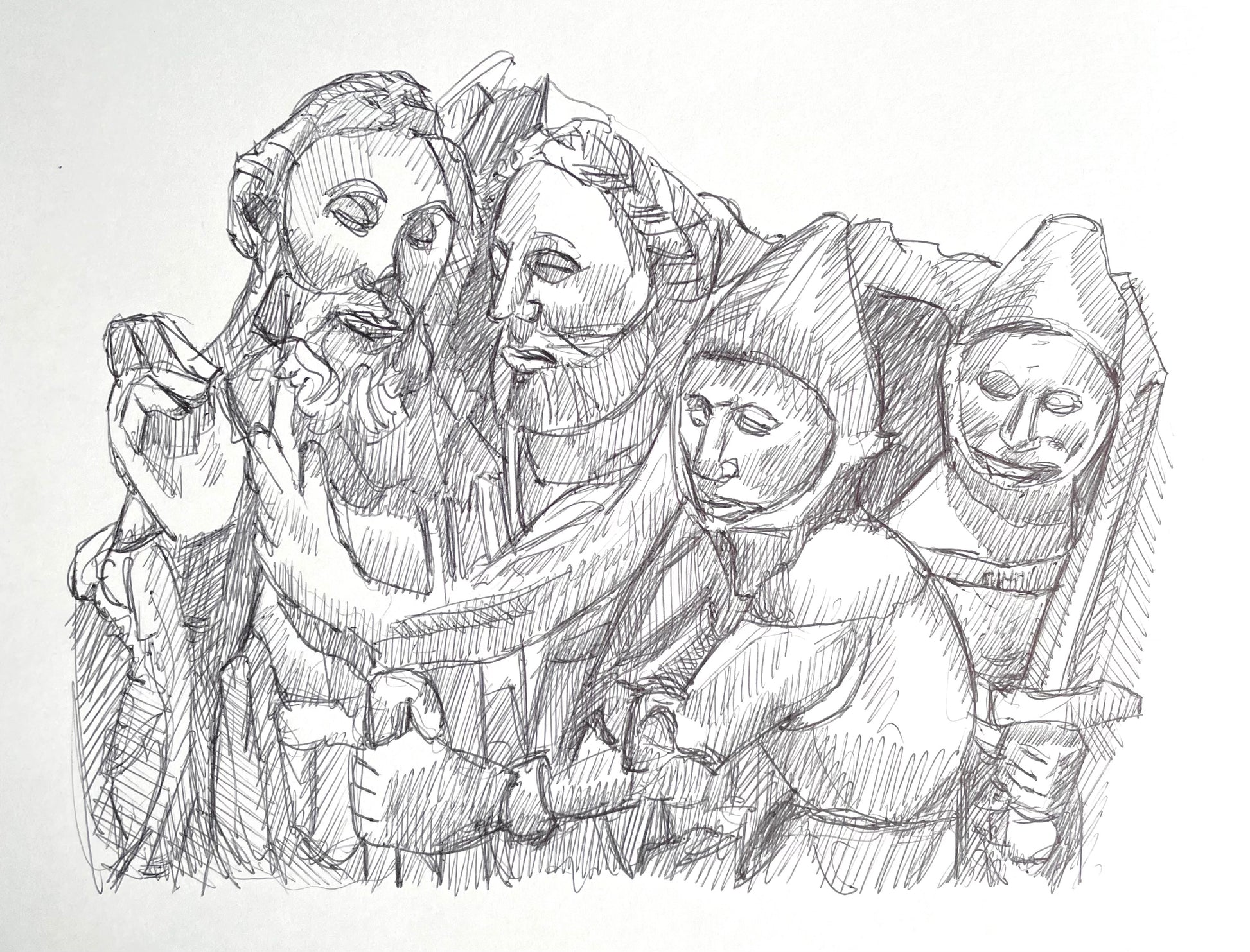 The Betrayal of Christ – Pen and Ink Drawing from The Met’s Medieval Sculpture - Original Work of Art