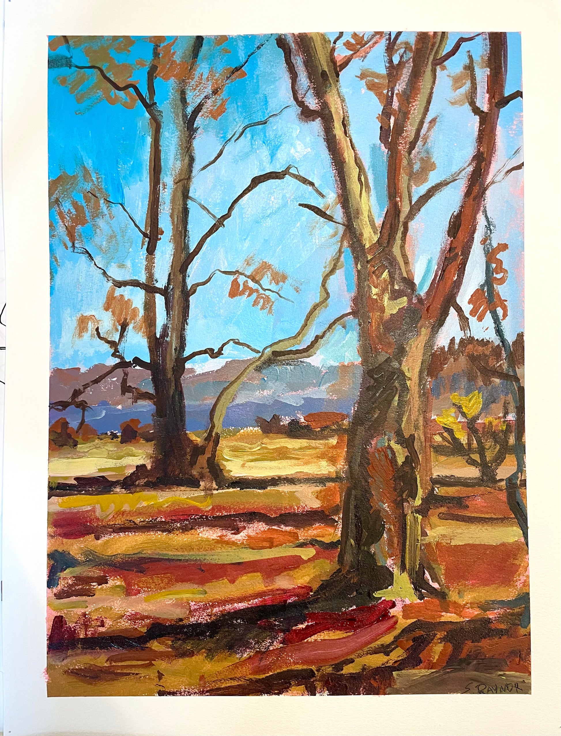 'Two Sycamores from California ', original work. acrylic paint on Arches Paper, 2025